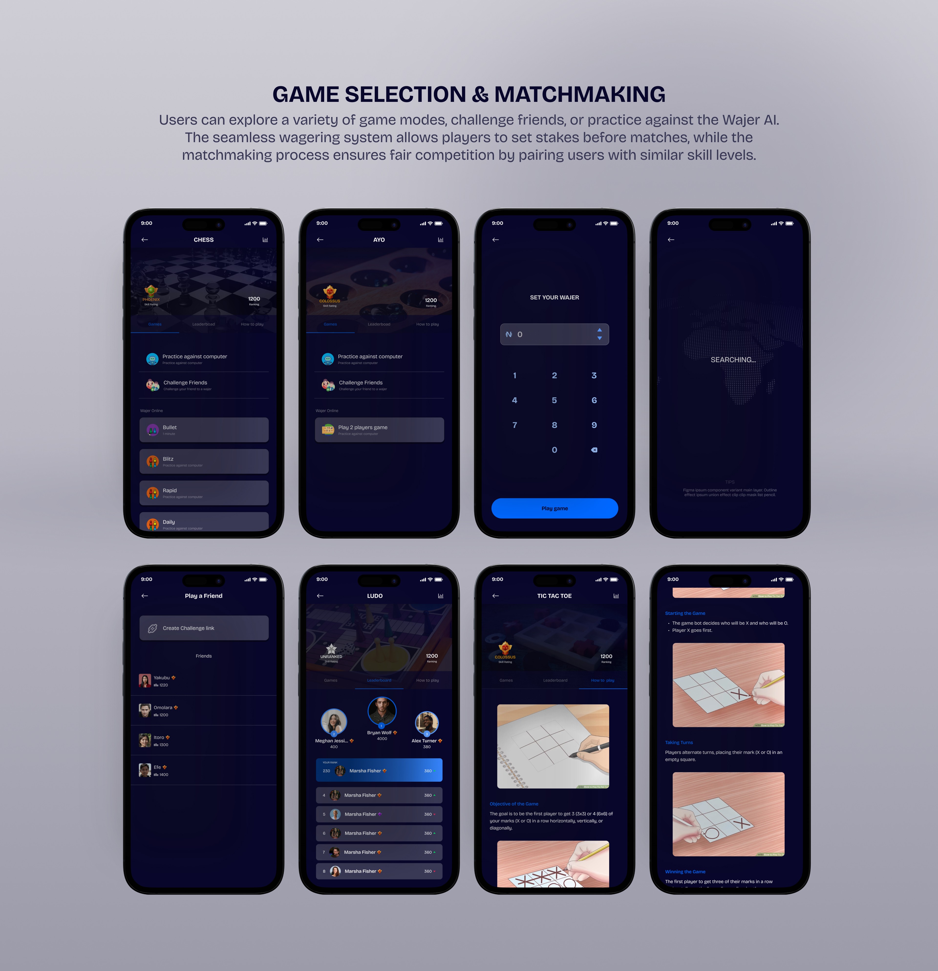 RAISING THE STAKES Gaming has always been about more than just winning—it's about the thrill of competition, the joy of social connection, and the satisfaction of mastering a game. The challenge was to create a platform that blends these elements, allowing users to compete, socialize, and earn while preserving the simplicity and fun of classic gaming. The goal was to strike the perfect balance: a gaming ecosystem that feels rewarding yet effortless, competitive yet inclusive—where every player, whether beginner or pro, finds their place and every match is an experience.